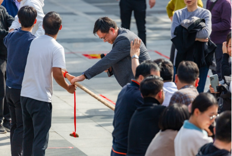 首先开赛的是拔河。吴唐风书记为第一场拔河比赛发令,本次趣味运动会也正式开赛!赛场上参赛选手们齐喊“一二”“一二”的口号,双手紧握长绳,身体后仰,双脚蹬住地面,合力于一绳。经过几轮激烈的角逐拔河比赛落下帷幕,全体参赛人员以胜不骄,败不馁的精神面貌,展现了绅士漫画