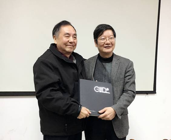 图:院党委书记张和秋代表学院接受退休老师的赠书