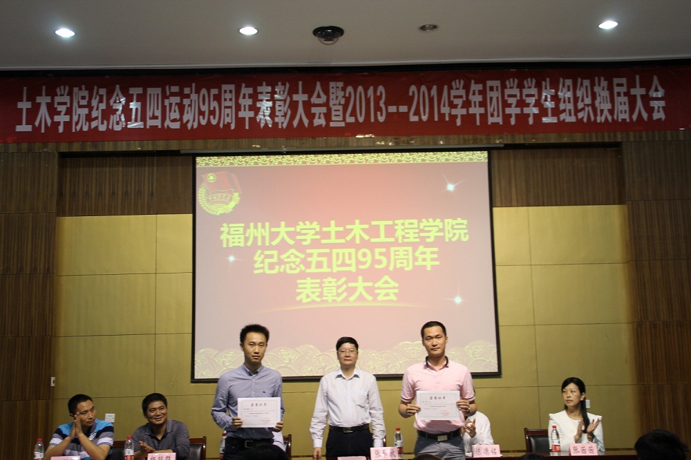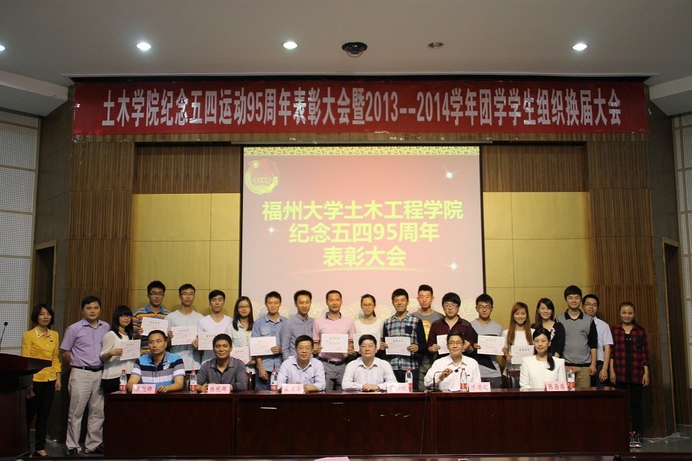 大会在庄严的国歌声中拉开帷幕。首先由杨艳群老师宣读本次表彰大会的表彰决定,并由出席的领导嘉宾分别为获得院级五四表彰先进集体代表(6人)、先进个人代表(6人)以及先进青年工作者教师代表(陈永健、薛俊青)颁发奖状,并合影留念。