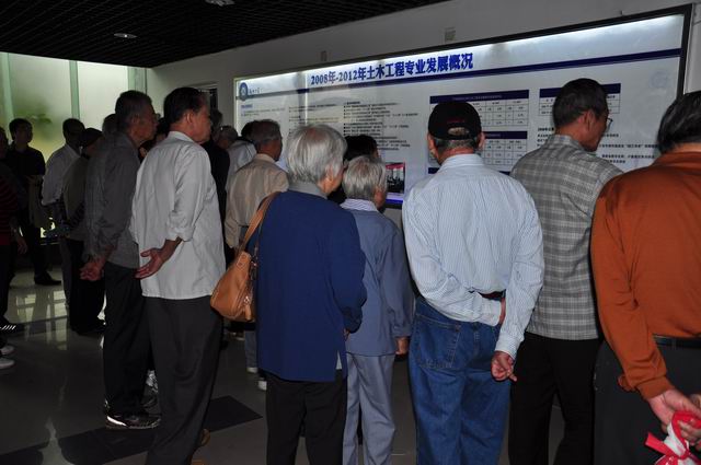 LED教学科研宣传长廊和土木学院的实验中心,学院各部门的相关负责人为老教师介绍了土木学院近几年来所取得的成绩,老教师们参观后个个点头称赞。