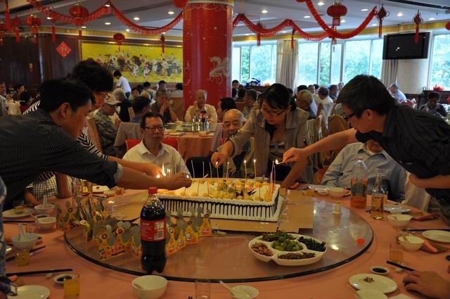祝寿会上,党委书记张和秋致祝寿词,他向老教师们介绍了学院一年来的发展变化和取得的喜人成绩,并代表院党政工祝全体离退休教师重阳节快乐,祝愿他们“年年重阳好心情,岁岁平安永健康”。同时还为今年满八十、七十岁的六位老教师过了集体生日,并为他们送上了生日蛋糕,大家共祝寿星们生日快乐、健康长寿。