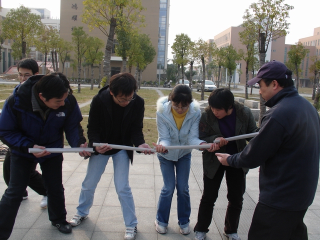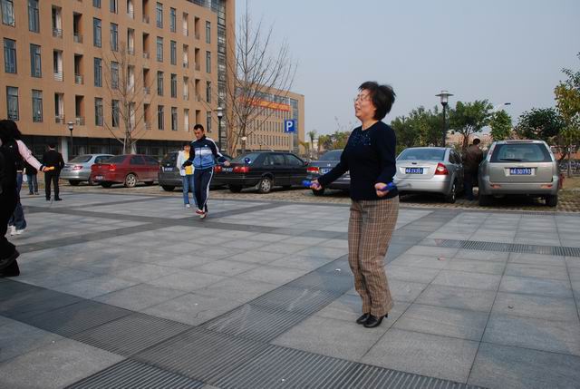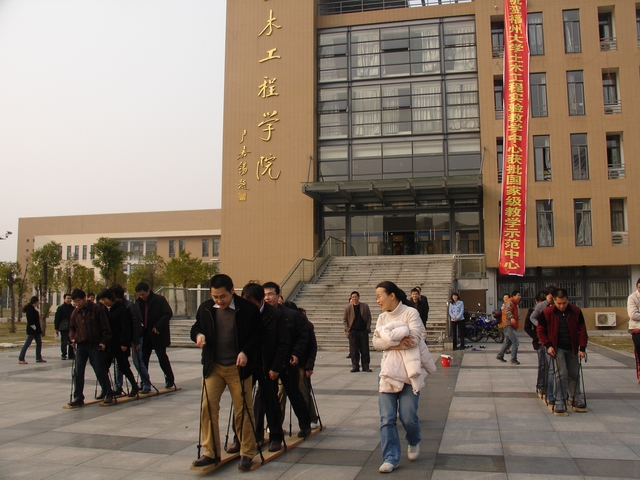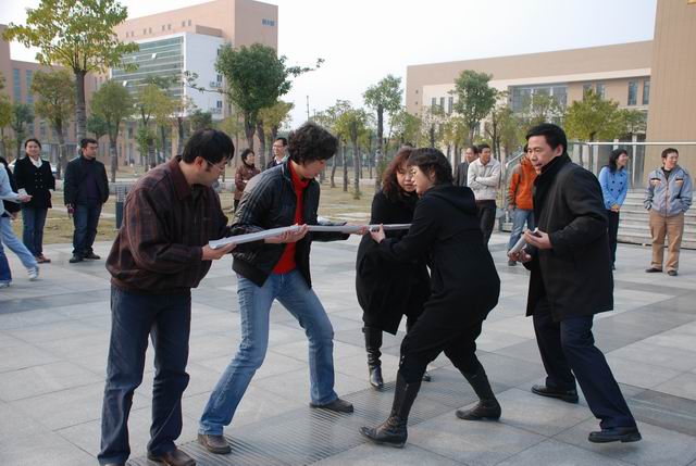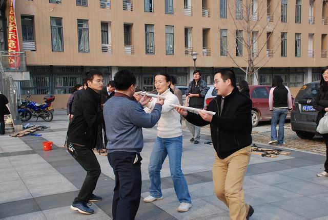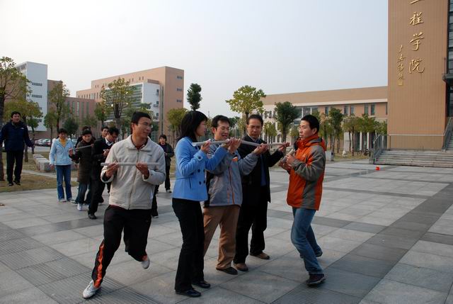 在土木楼广场举行了庆元旦趣味体育活动,同时举行全院教师抽奖活动。趣味体育项目有单人跳绳、集体跳绳、珠行千里和提线踏板等,比赛场面热闹、激烈、有味,房贞政副校长和张和秋书记亲临活动现场,祁皑副院长还参加跳绳等比赛项目。一年的努力工作在年终的最后一天得到了激情释放,让教师们满怀信心地迎接2010年的到来。