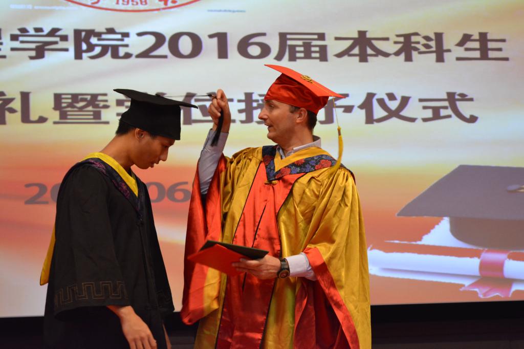 党委书记张和秋、院长布鲁诺教授、院党委副书记陈德铭老师、副院长胡昌斌老师、副院长张挺老师、副院长邓涛老师、院团委书记许长宾、各专业系主任及各年级学生辅导员。此次典礼由陈德铭老师主持。