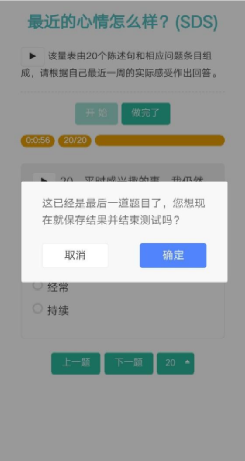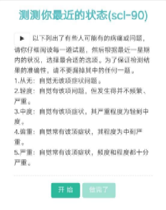 三、点击进入量表跳转测评界面,点击开始,并根据自身情况认真作答每道题目。两份量表均需完成。