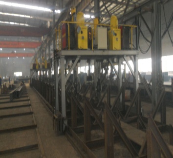 公司拥有先进的成套钢结构专业生产设备,其中箱型柱(梁)生产线的电渣焊机为日本进口设备,双弧双丝焊机为美国进口的林肯焊机。现有五条生产线,使用的生产线分别为二条焊接H型钢生产线、一条次构件生产线、二条重钢生产线,年生产能力50000吨。