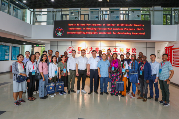 2023年10月13日,由中华人民共和国商务部主办、福建省对外经济合作中心承办的国家援外培训项目“发展中国家对外援助成套项目(受援方自建)受援方官员项目管理能力提升研修班”的17名外宾来我校参观交流。