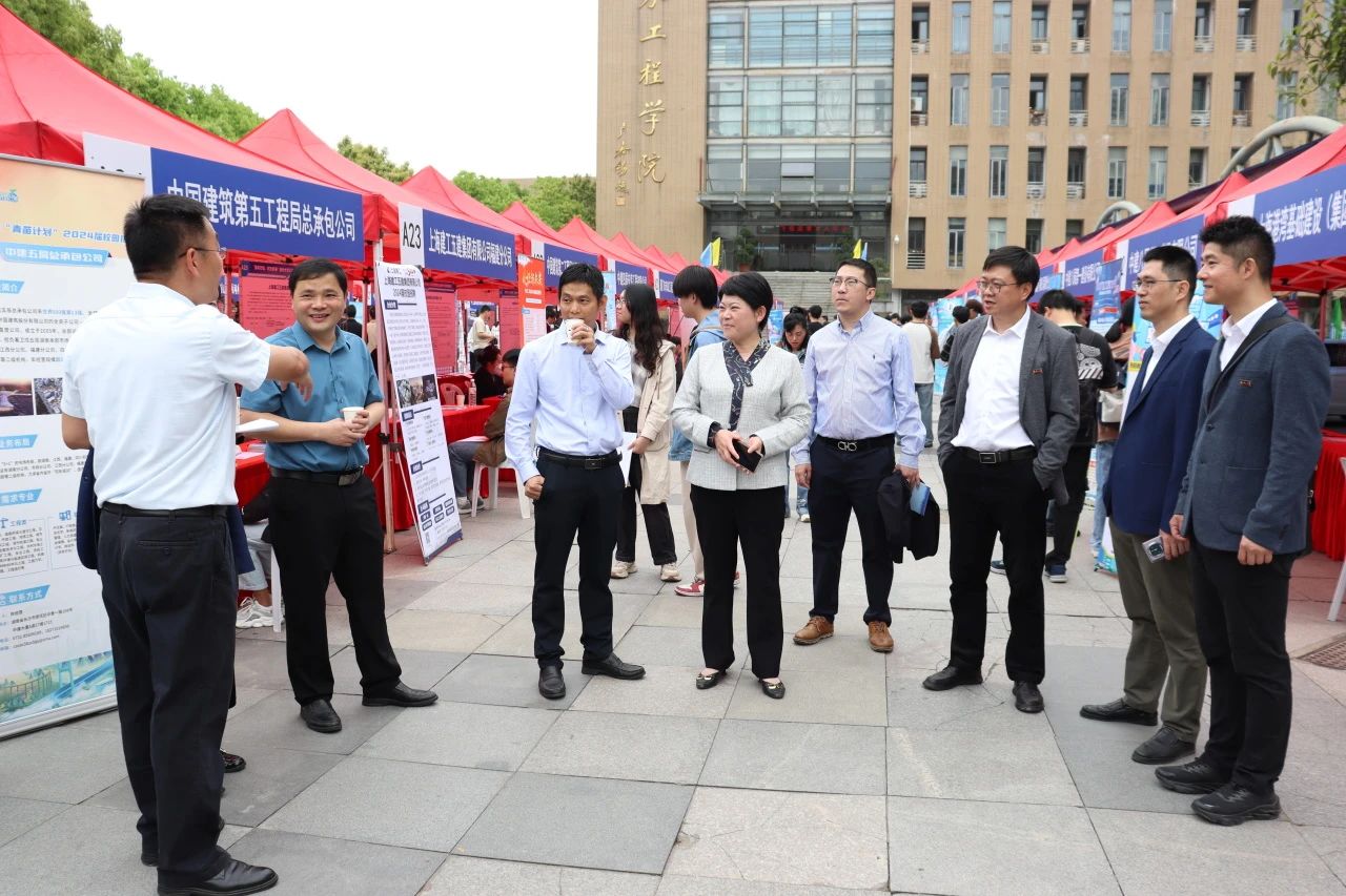 、建筑与城乡规划学院、先进制造学院与海洋学院党政领导也莅临招聘会现场,与企业负责人交流沟通,了解招聘需求及毕业生求职就业情况。