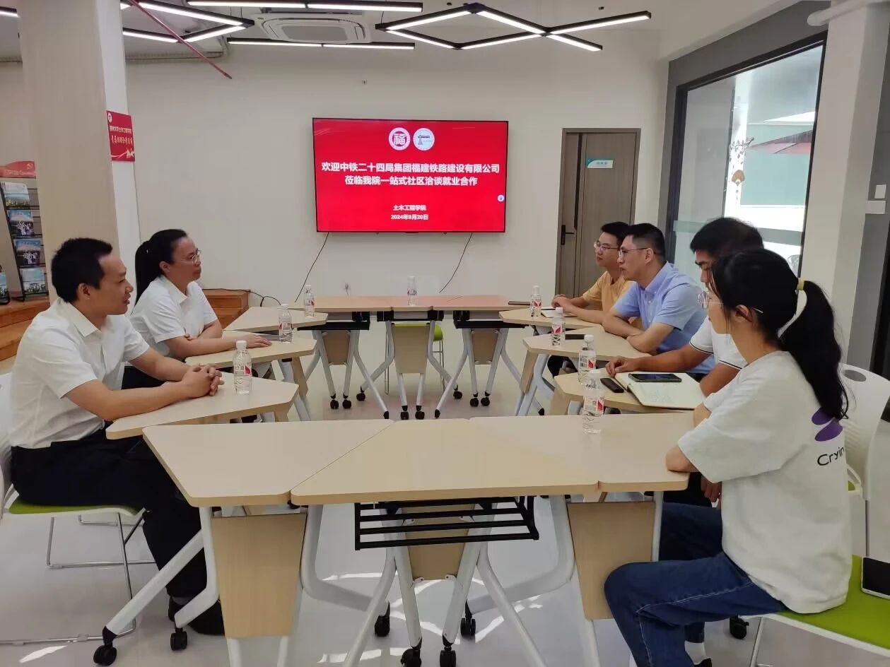 920日下午,绅士漫画 在一站式社区的四季知行职业发展共享活动空间举办校企座谈会,中铁二十四局集团福建铁路建设有限公司党委干部部(人力资源部)部长郑耕心、副部长王烨来访洽谈就业合作,绅士漫画 党委副书记郑寿,毕业班辅导员沈成平、方威及兼职辅导员韦若梅共同参会。