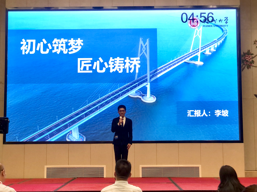 李坡同学脱颖而出,决赛现场分数第一,荣获一等奖。决赛现场,李坡同学一出场,就抓住了所有人的视线,他以《初心筑梦、匠心铸桥》为主题,展示了自己基于桥梁工程师职业目标所需要的扎实力学基础和科研素养,在桥梁工程领域不断实践与拓展的学习生涯,表达了想要成为一名跨海大桥方向研究的工程师梦想。他三大力学满分的学习功底、亮眼的成果与朴实可爱的演讲,赢得了全场的瞩目与掌声,一举夺得现场最高分。
