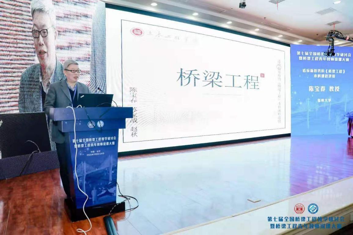 陈宝春教授应邀作了“适应新形势的《桥梁工程》本科课程建设”的主题报告,报告包含了我校桥梁工程教学历史回顾、教学框架的调整、教材内容的变化、国际化建设、今后的展望共五个方面,介绍了行业快速发展背景下桥梁工程课程和教材编写的新要求,我校桥梁工程教材和课程如何适应时代发展要求,获得了参会代表的高度关注。