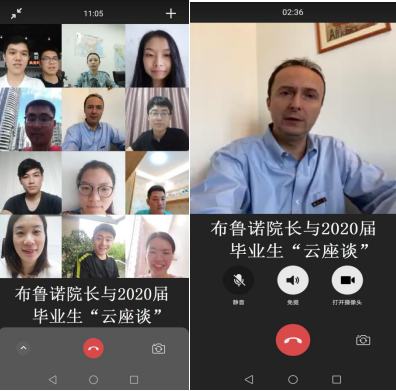 领导面对面交流。部分毕业生通过视频参与线上座谈会。