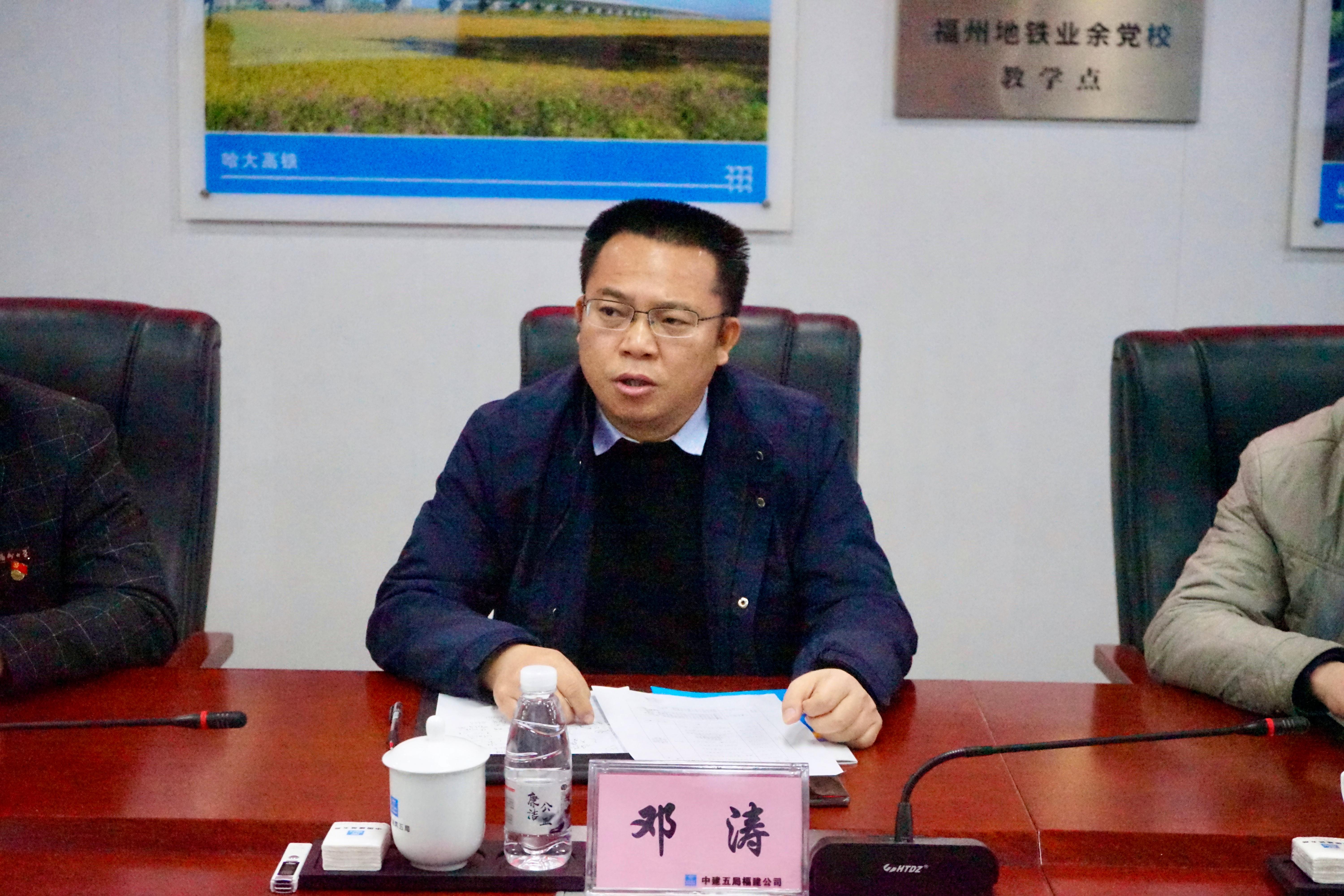 邓涛副院长一行的到来,得到了中建五局土木公司人力资源部总经理周立杰、副总经理肖宇航,中建五局福建分公司副书记、常务副总彭丹,中建五局福建分公司副总经理刘兴华,中建五局福州地铁4号线项目经理宋心村等企业方领导嘉宾的热烈欢迎。