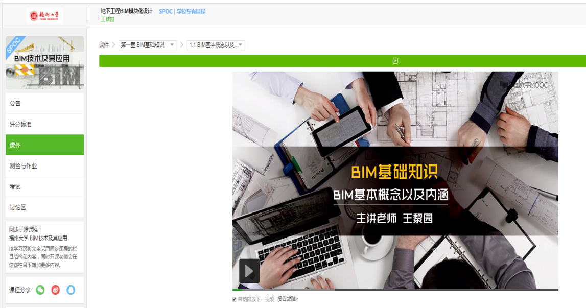 王黎园老师主讲《地下工程BIM模块化设计》课程 ,依托于自建慕课,注重与时俱进,积极探索专业教育与思政教育相融合,将“四个自信”与课程案例结合。