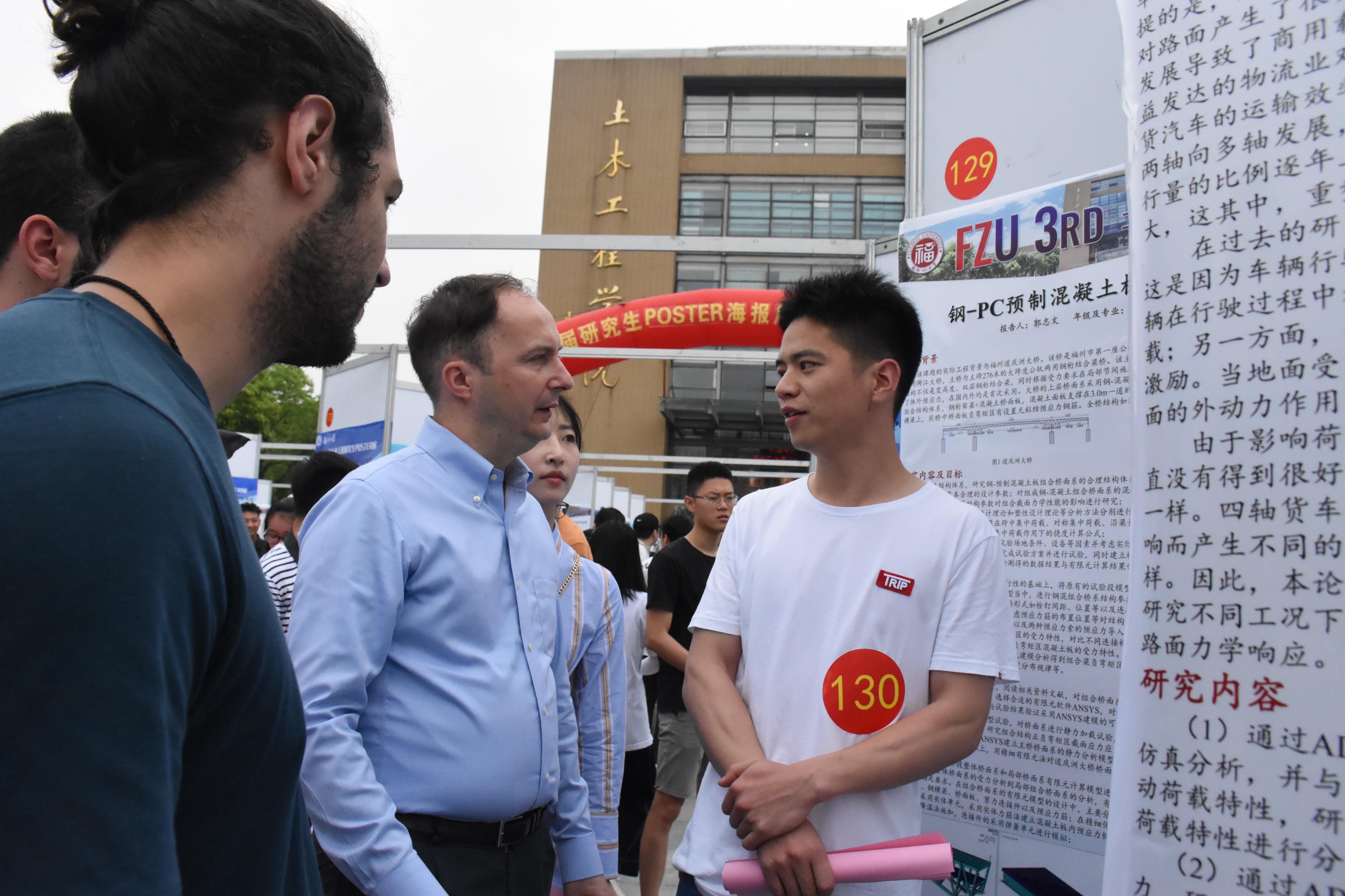开幕式后,与会领导、老师和同学们来到学院广场参观研究生POSTER海报展览,并对展出海报进行现场评选。广场上共展出266份科技学术海报作品,囊括了岩土工程、结构工程、市政工程、防灾减灾工程及防护工程、桥梁与隧道工程、水文学及水资源、水利工程、和交通运输工程等诸多工程领域,在材料、结构、机理等方面做了深入研究探讨。POSTER展是国际会议上进行学术交流的常用形式,也是大学和研究机构在研究生培养方面开展成果交流与展示的一种普遍方式。海报上详细地展示了研究主题、背景、原理以及相关的数据和部分结论,图文结合,生动易懂,让在场同学对一些新的学术成果和理论有了进一步的了解,拓展了创新思维,收获颇丰。