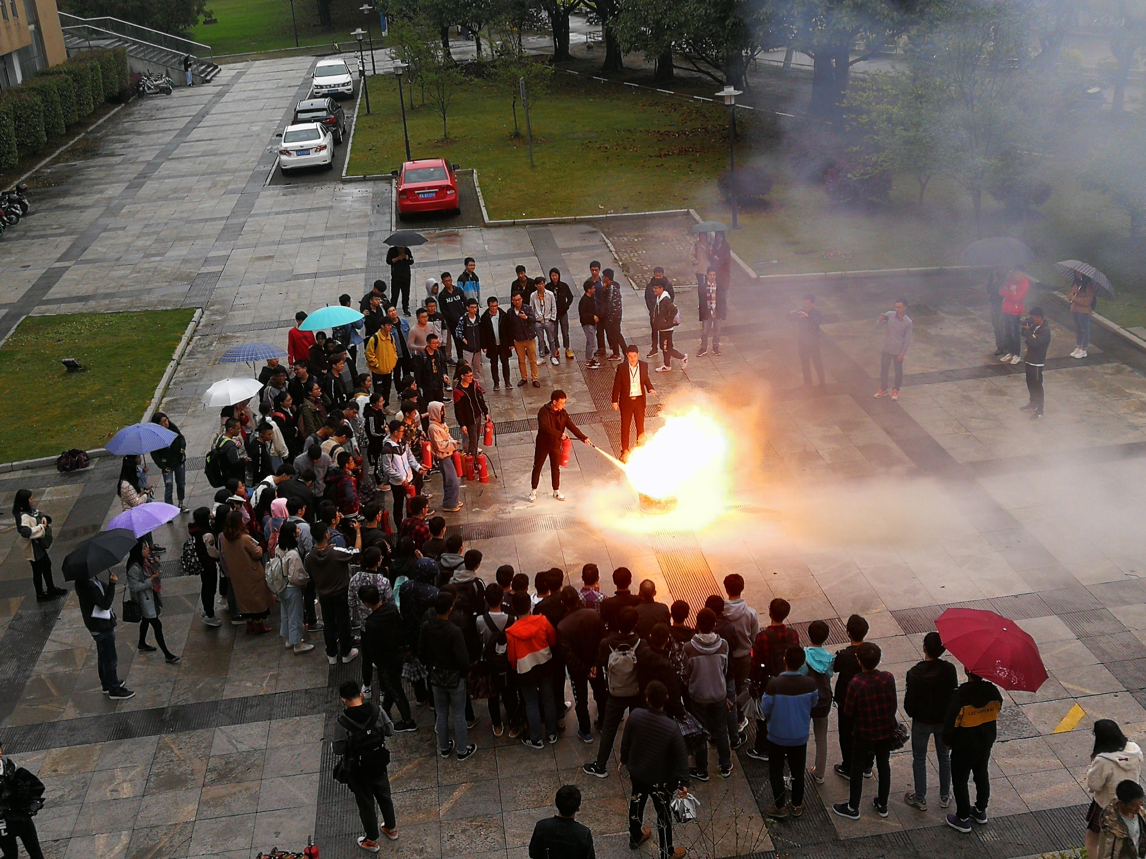 师生开展了消防安全知识讲座及实操演练。院党委副书记余飞,各年级辅导员,各系所、实验室教师及本科和研究生宿舍楼长、舍长、年级学生代表共同参加了本次讲座。