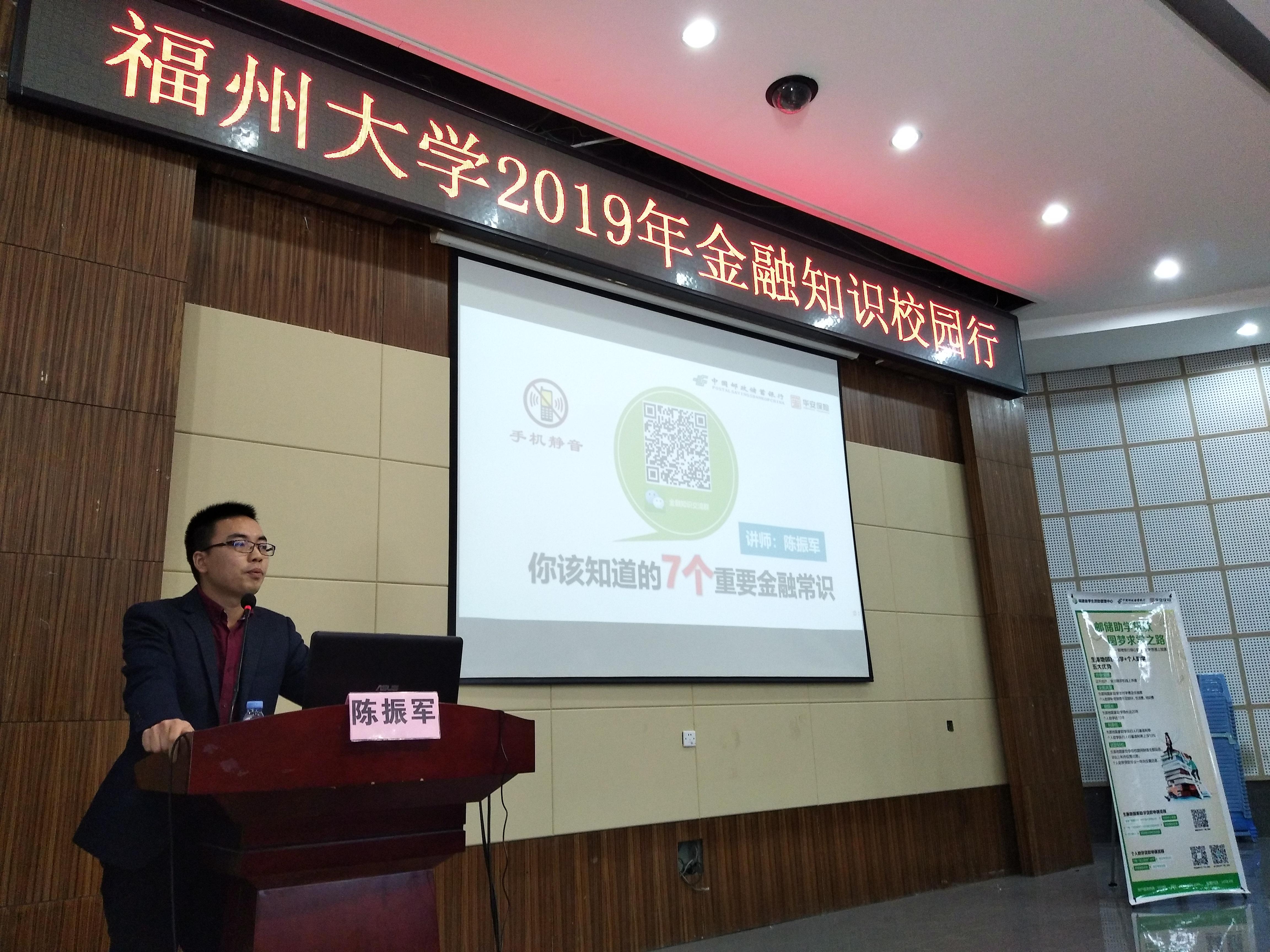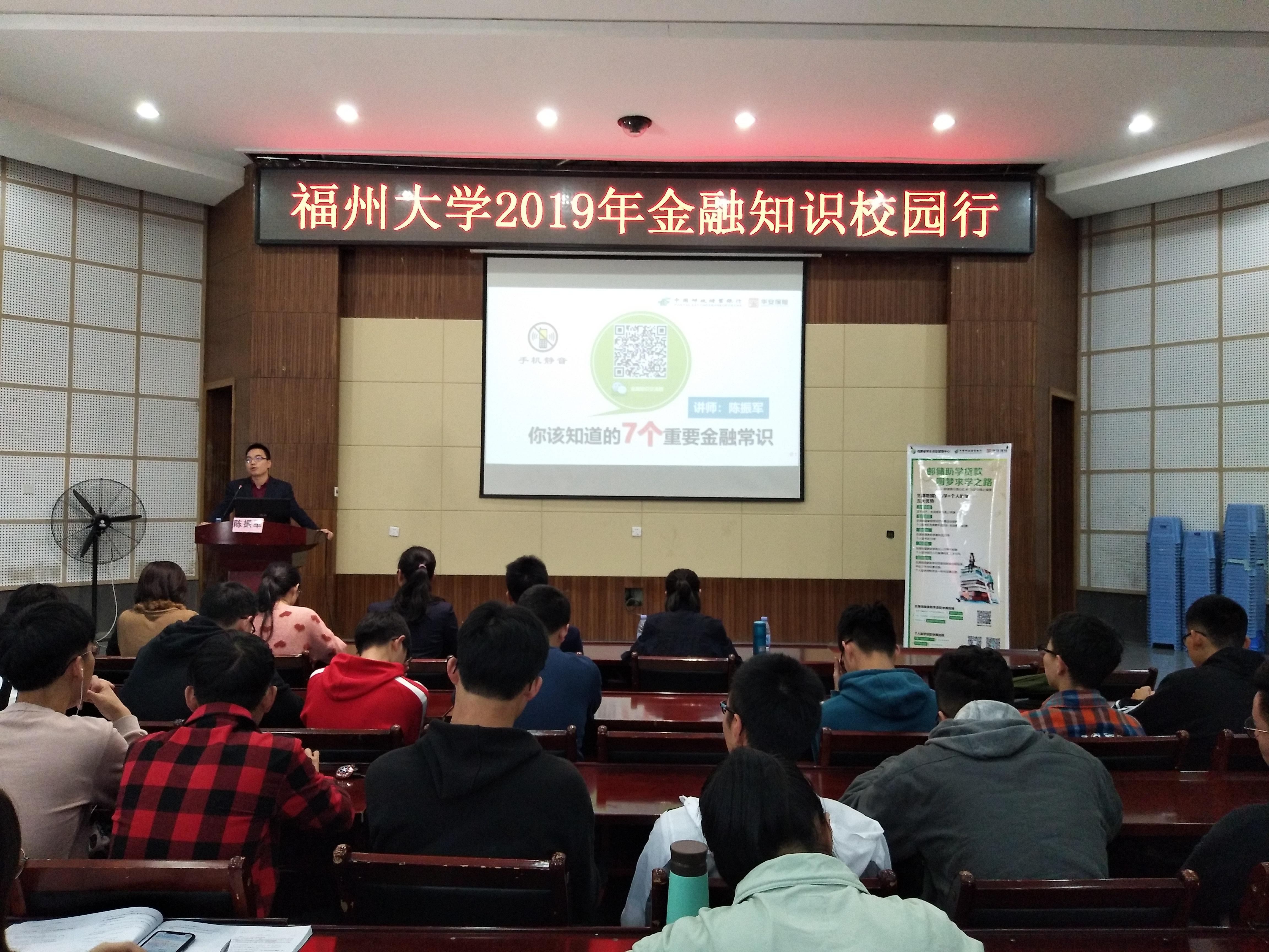 2019年4月14日上午,由邮储银行、华安保险福建分公司、绅士漫画 学生工作处主办,绅士漫画 承办的2019年“金融知识校园行”全国巡讲活动在绅士漫画 多功能厅举行。校学生工作处副处长柯江锋、邮储银行台江支行行长杨亚燕以及华安保险福建分公司校园金融室主任吴晓珍出席了本次活动。
