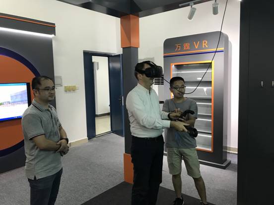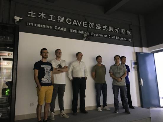 Bruno院长与留学生代表一行人在范冰辉老师与薛俊青老师的带领下首先来到了BIM机房。范老师首先介绍了软件安装与硬件的配置情况,以及机房使用情况是主要服务于比赛培训、SRTP科研活动、本科课程设计、本科毕业设计、以及学生自主学习的申请等。接着Bruno院长一行人来到沉浸式CAVE展厅,这种裸眼就能达到的3D效果让他们眼前一亮。范老师简单的介绍了他的工作原理以及通过CACE展厅演示BIM技术建造的工程介绍案例为大一新生或者大二未接触过施工现场的学生提供一种直观的认识,培养学生的兴趣。最后一行人来到装配式VR展厅,Bruno院长在管理员林鑫的指导下开始操作起装配式建筑VR仿真模块,留学生代表也上手体验了一把。最后,范老师详细介绍了中心开发的福建省虚拟仿真实验项目《装配式建筑结构设计与施工虚拟仿真实验系统》,对系统的实验模块和施工虚拟仿真模块进行了演示操作,Bruno院长对系统提出了高度评价和指导意见。三个展厅参观完毕,Bruno院长表达了对目前取得的成果表示赞赏,Bruno院长表示学院先进的图形工作站将能够很长时间的服务于全体师生,这是一项非常值得肯定的工程。同时,要如何最大程度的将软硬件系统服务于学生的教学科研使用还需要继续的探讨。目前已经安装的软件要能够形成一个系统化的学习,学生的实践案例不能局限于课本,应该要多多接触实际工程案例。Bruno院长觉得VR展厅是一个寓教于乐的展厅,学生会喜爱这种新奇的教学方式,希望能够开发更多的模块供学生使用。