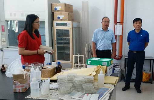 现场,学院领导对实验室用电安全、科研设施与装置、危险品储存安置、消防装置规范性等进行了全方位的检查,同时全面了解目前学院科研用房的使用情况及存在的问题。黄书记指出,实验室安全工作及整体建设已经取得的明显且稳定的进步。实验室仍应不断提升服务水平,进一步完善规范使用制度,切实保障安全使用。此外,目前学院处于一流学科发展的重要时期,科研用房紧张,应进一步落实学校政策,制定学院相关用房制度,整合现有资源,提高利用率。