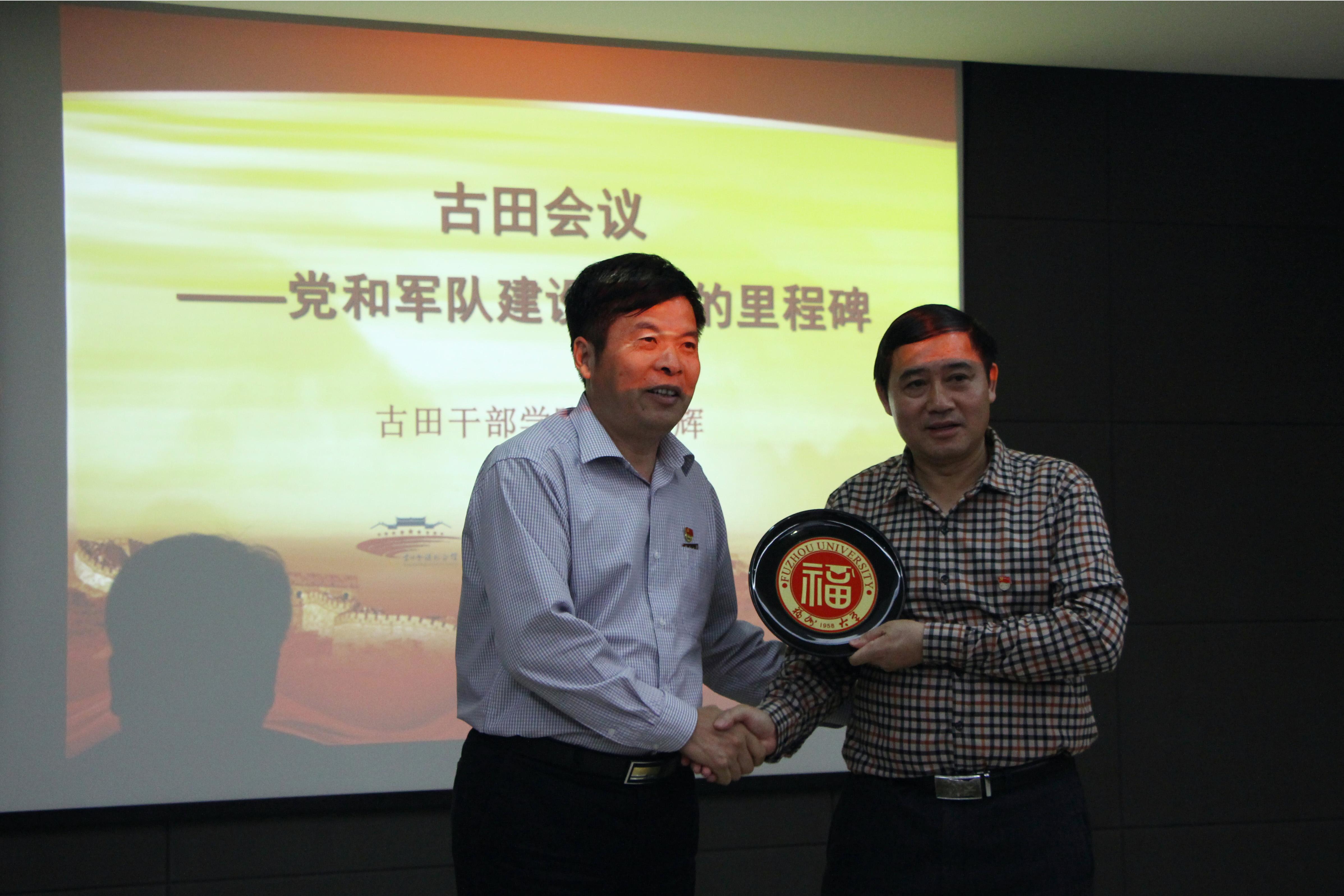 中国苏区第一模范区——才溪乡调查旧址,便是行程的第一站。师生们参观了毛泽东才溪乡调查纪念馆,馆内满满地记载着毛主席当年深入农村革命根据地调研的事实和成果,其中“没有调查就没有发言权”的著名论断对当下党员深入基层学习与工作仍具有重要而深远的意义。此次主题党日活动还特别邀请了古田干部学院副院长、古田会议纪念馆馆长曾汉辉作了一场关于《古田会议——党和军队建设史上的里程碑》的主题报告,报告生动还原历史,师生受益匪浅。