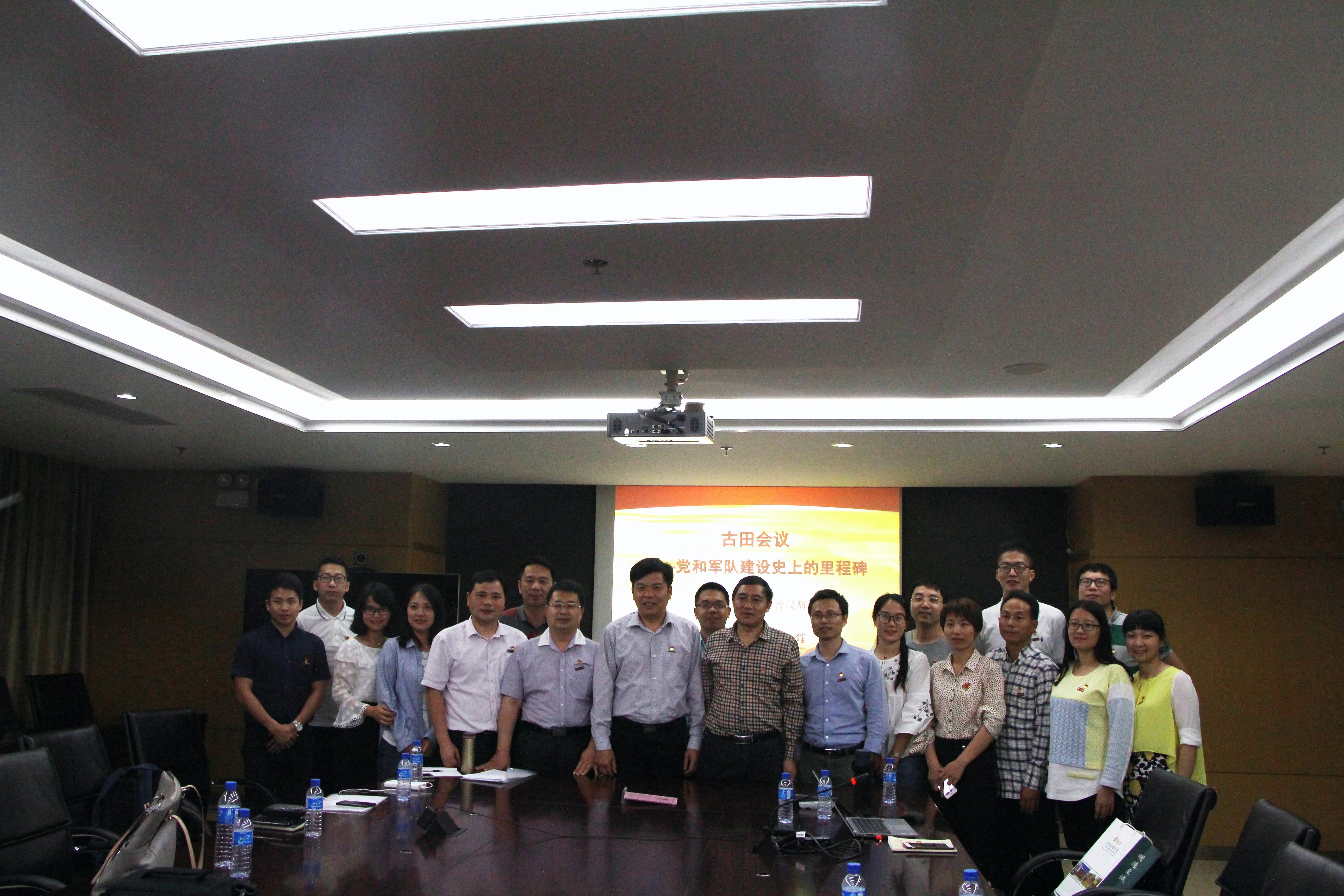 党委书记黄培明带领各系、所、中心党支部书记、机关干部党员、政治辅导员等出发前往革命老区上杭县,开展以“不忘初心,牢记使命”为主题的党日活动。师生一行23人先后到才溪乡调查旧址、古田会议旧址参观学习,并瞻仰毛泽东雕像,重温入党誓词,聆听革命主题报告。又赴紫金矿业集团开展校企党建工作交流会,参观了紫金地质矿产博物馆、黄金冶炼有限公司学习其绅士漫画。