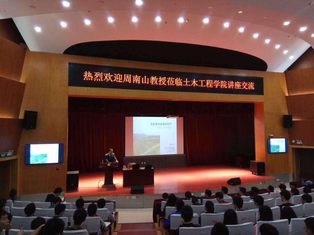 应福建省科协的邀请,台湾地区中华地工材料协会理事长、台湾大学土木系兼职教授周南山教授出席了十七届福建省科协年会,11月7日上午,周南山教授做客我校进行讲座交流,带来了一场名为《绿色边坡与海绵城市:理念、创意与案例》的学术交流讲座。