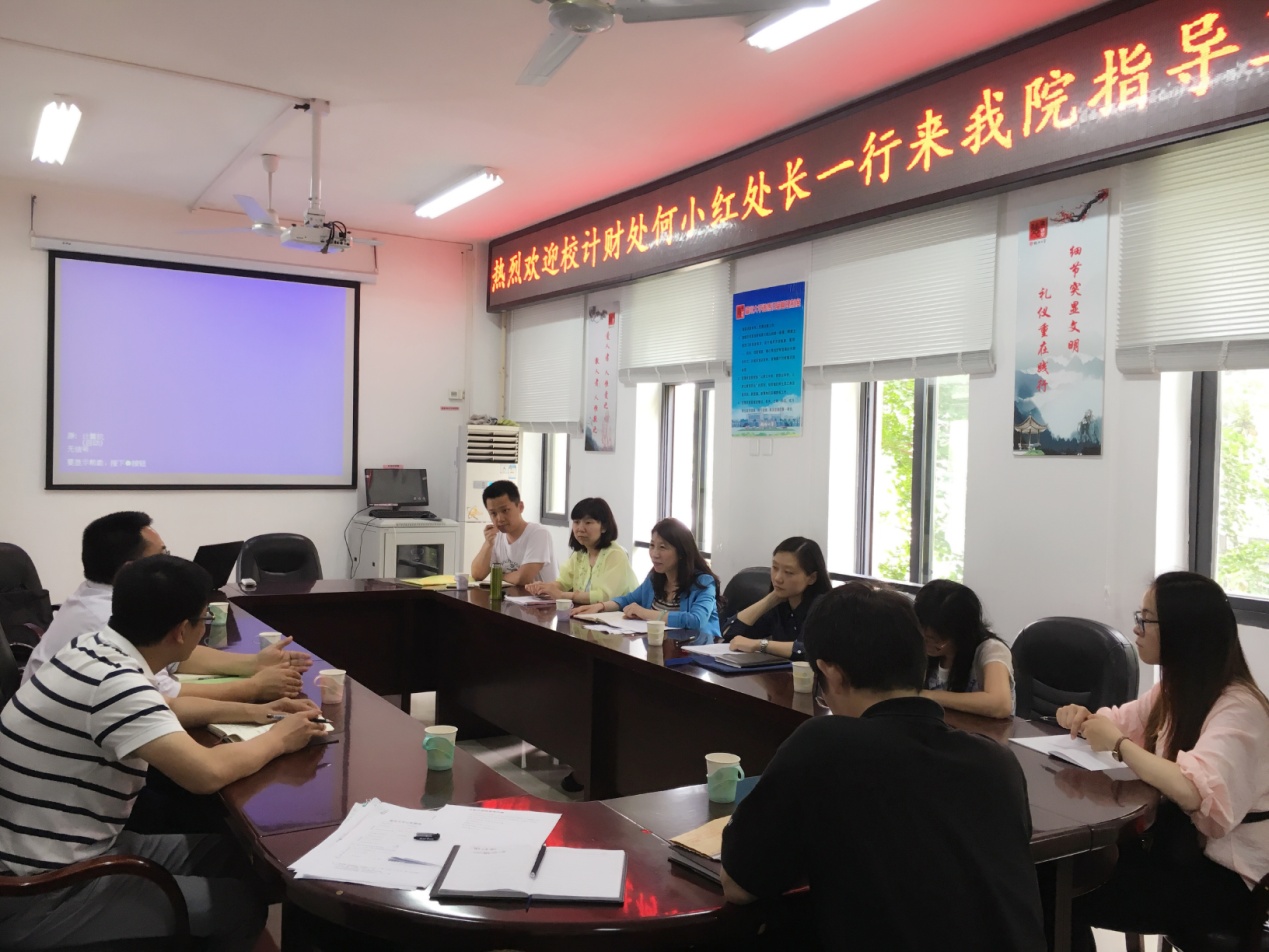 5月10日下午,校计财处何小红处长一行六人来绅士漫画 座谈,进行工作调研和业务指导。绅士漫画 张挺、邓涛副院长与部分师生参加了座谈会。