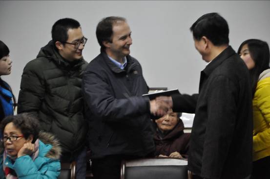 参加迎春茶话会的有:党委书记张和秋、院长Bruno、常务副院长韦建刚、副书记陈德铭、副院长张挺、副院长胡昌斌、副院长邓涛、工会主席郑刚群以及离退休老师、民主党派代表、新进老师共50多人。书记张和秋向大家致以新年的问候,向大家在过去的一年里为学院所做出的辛勤工作表示感谢,并向大家介绍学院人事引进改革、教育教学改革、科研体制改革等方面取得的新进展,接着一一介绍了新进年轻教师的情况;院长Bruno向大家介绍学院接下来的发展规划,号召大家凝心聚力,紧密合作,共同开创学院国际化建设发展的新局面;常务副院长韦建刚向大家介绍2015年学院各方面取得的进步,并指出在新的一年里,学院将面临新的机遇和挑战,各项工作任务艰巨而繁重,希望广大教职工精诚团结,奋发敬业,以高度的责任心和使命感,扎扎实实把教学科研、管理服务等各方面工作开展好、落实好。整个会场充满迎春气象,温馨而热烈。
