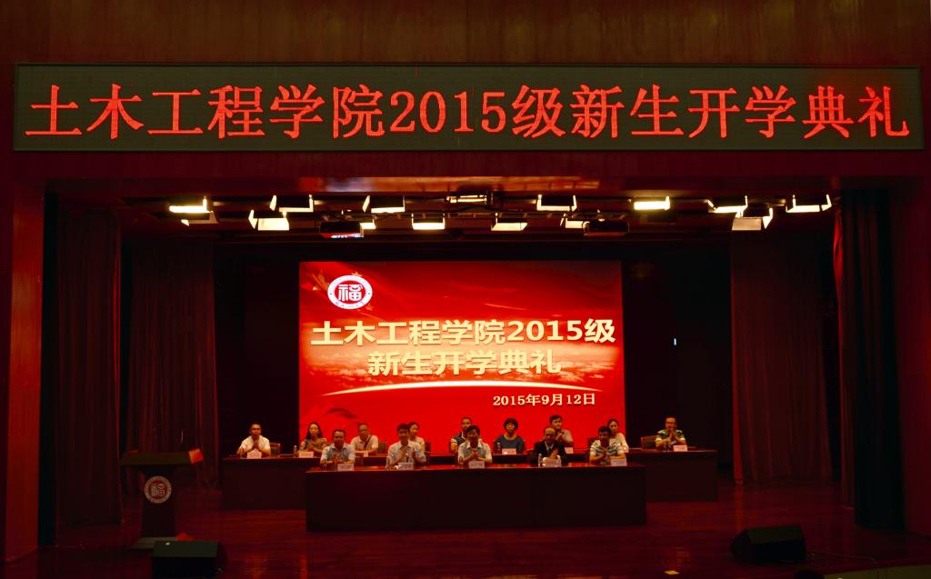 党委书记张和秋老师,院长布鲁诺·布里斯杰拉老师,副院长张挺老师、邓涛老师,院党委委员、工会主席郑则群老师,院党委委员、团委书记许长宾老师,建筑工程系副主任罗素蓉老师,道路与桥梁工程系主任谷音老师,工程管理系主任黄利频老师,水利水电与港口工程系主任王立辉老师,轨道与地下工程系缪圆冰老师,给排水科学与工程系范功端老师,交通工程系卓曦老师。院党委副书记陈德铭老师担任此次大会主持人。参加本次大会的还有学院全体辅导员、教师代表,以及全体2015级新生们。