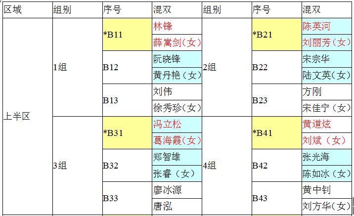 1.男双(限32队,4队1个小组)和混双(限24队,3队为1个小组)