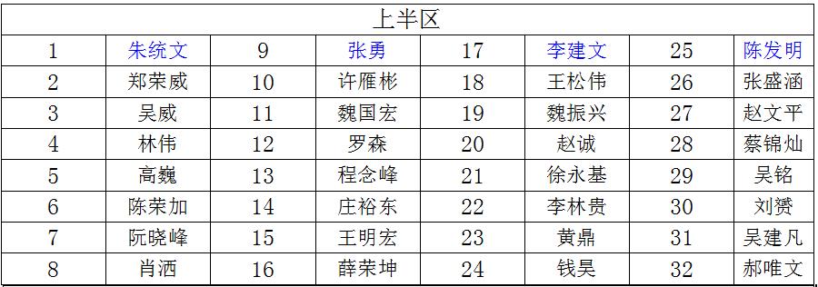3) 第二轮比赛,1-2的胜者和3-4的胜者比赛,依此类推,决出16强。