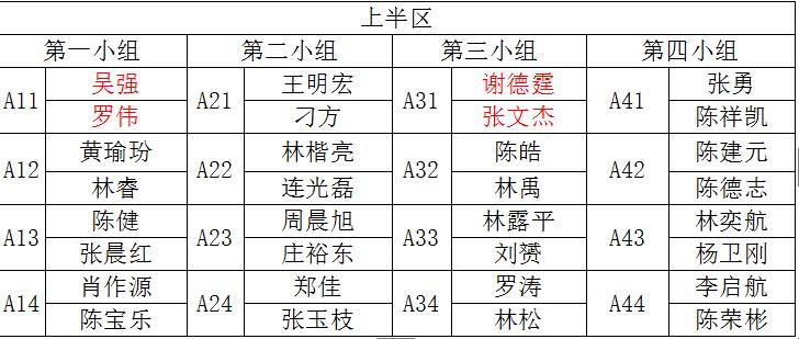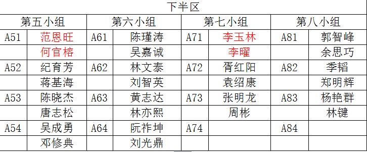 3) 第三轮,上区12组第一 vs 上区34组第一,下区56组第一VS下区78组第一,胜者进入决赛