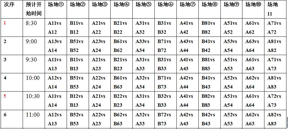 注:请各队队员主动找场裁,确定具体的比赛时间。如果比赛时在场边找不到人,视为主动放弃比赛资格。