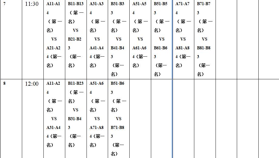 5) 第四轮比赛,第1小组第一名与第2小组第一名比赛,依此类推。