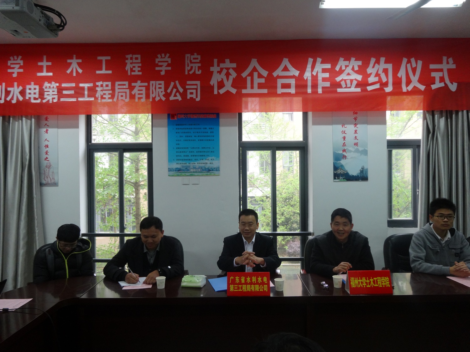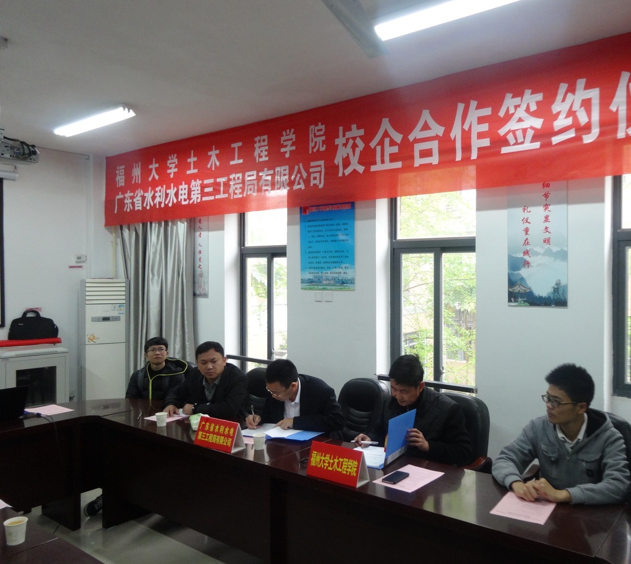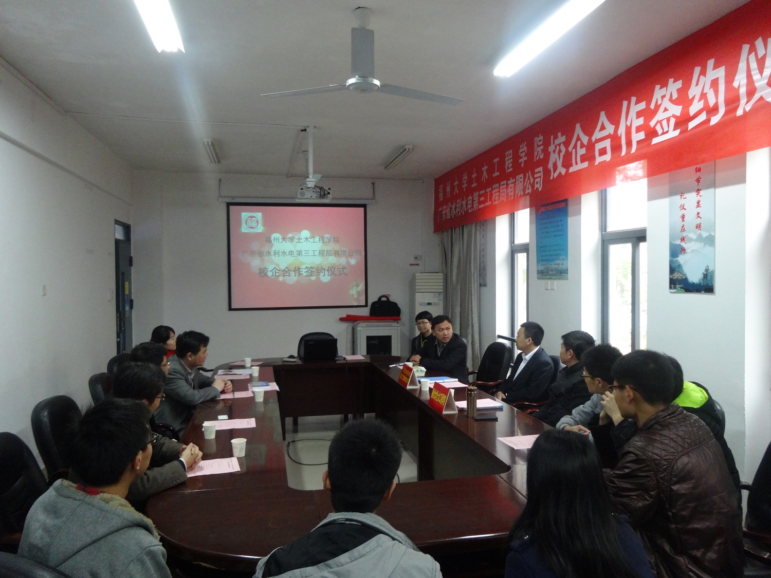 与广东省水利水电第三工程局有限公司校企合作签约仪式在土木工程楼第二会议室举行。广东省水利水电第三工程局有限公司人力资源副经理龚光锋、广东省水利水电第三工程局有限公司福建分公司经理卢宾,绅士漫画