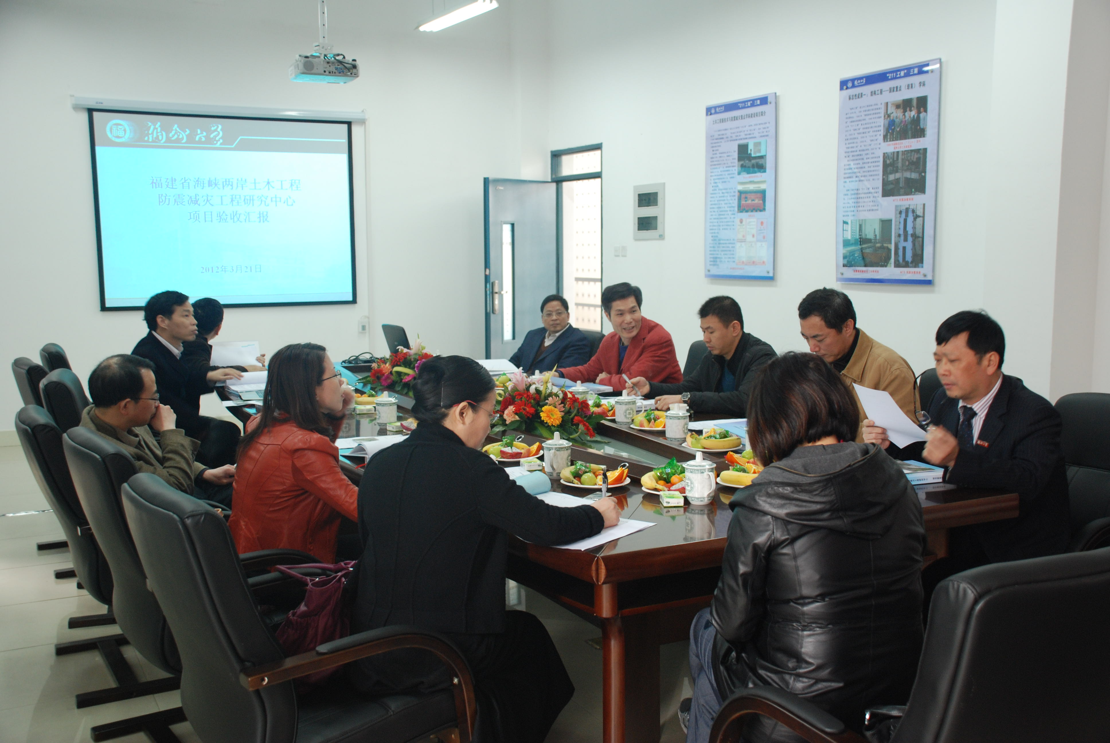 2012年3月21日,福建省海峡两岸土木工程防震减灾工程研究中心(下称“防震减灾中心”)在福建省发展和改革委员会组织下顺利通过验收。学院卓卫东副院长,祁皑副院长,“防震减灾中心”主任房贞政教授,总工姜绍飞教授等人参与了验收会。与会专家听取了中心主任房贞政教授的汇报,审阅了项目验收材料,查看了项目现场,经认真质疑和讨论,对工程中心项目建设的工作给予了充分肯定,一致同意该项目通过验收,并对工程中心今后的发展提出了建议。