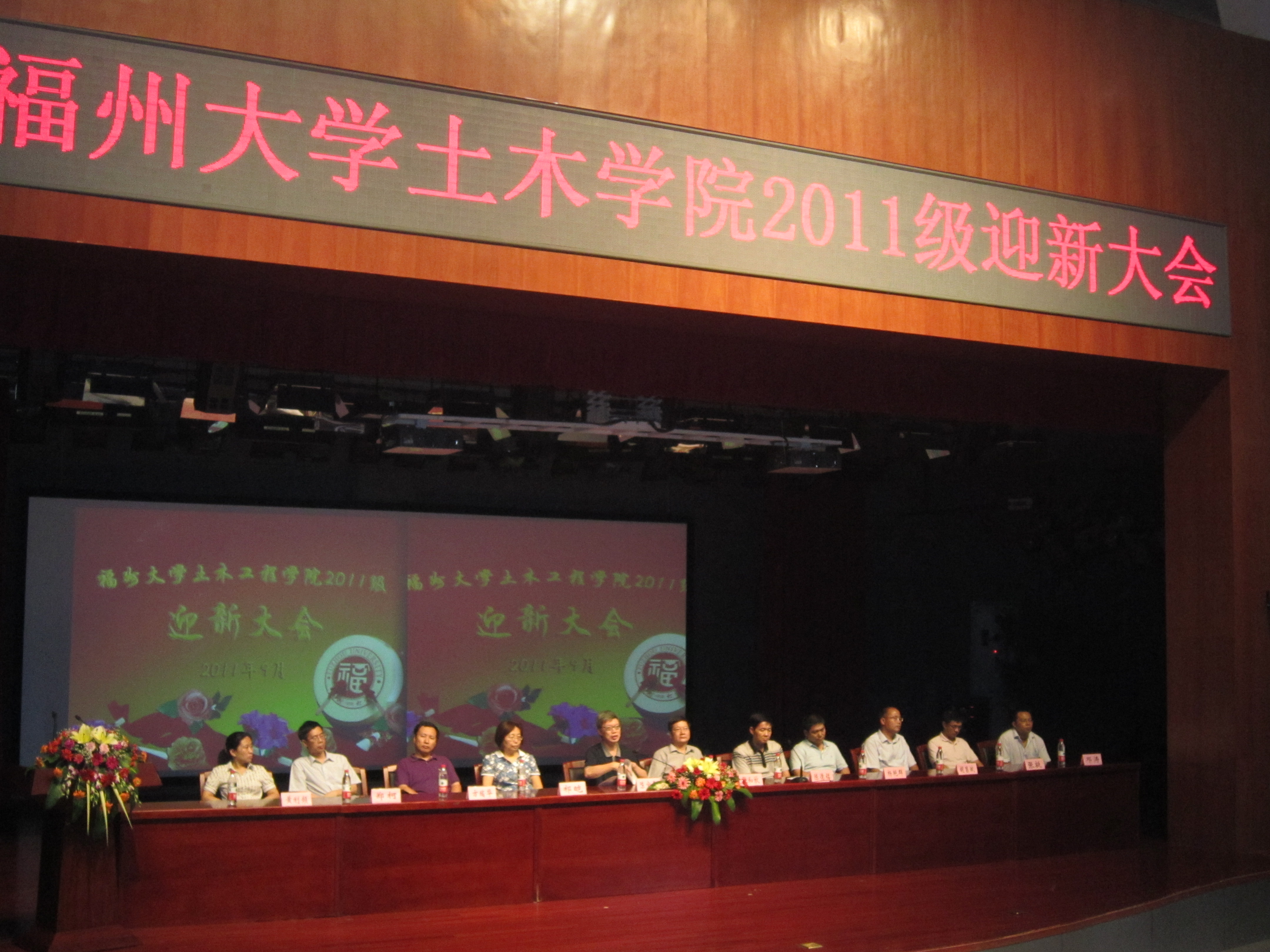 党委书记张和秋、院长陈宝春、副院长祁皑、副院长杨艳群、工会主席方绪华、建筑工程系主任林于东、水利水电与港口工程系主任张挺、道路与桥梁工程系主任胡昌斌、轨道与地下工程系主任邓涛,交通工程系主任郑柯、工程管理系主任黄利频,出席了本次大会。学院各年级辅导员和2011级全体新生参加了此次迎新大会。