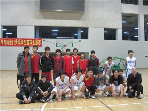 篮球队与金门大学营建工程系篮球队在风雨操场篮球馆进行了一场友谊赛。在紧张又友谊的气氛下,两岸师生的感情更加和谐、融洽。