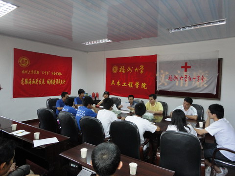 会议开始由许长宾老师就此次实践活动的目的进行发言,许长宾老师指出社会实践可以给在校大学生提供良好的锻炼学习的平台,增加社会阅历,同时也可以利用我们的专业优势为吴屯乡带来一些益处,例如可以为吴屯乡的灾后重建提供可行性意见,同时也可以为吴屯乡小城镇建设出谋划策,通过资源的整合使大家得到双赢。之后,裴乡长向我们简单介绍了吴屯乡的情况,同时对我们实践队员实践期间的实践任务提出了四点希望:1,希望我们能够利用我们的专业知识为小城镇综合体及防洪堤坝的修筑提出我们的可行性建议;2,队员分组进村,根据各个村的不同情况给出一些发展改建意见;3,为吴屯乡设计一份该乡体育馆规划草案;4,红十字会队员协助乡卫生站做好急救知识的宣传。大会的最后, 进行了社会实践基地的授牌仪式、校红十字会的捐赠仪式以及“见习村官”的聘任仪式。座谈会在大家的掌声中圆满结束。下午,我们在乡政府会议室成立了临时党支部,会议通过许长宾老师为支部书记。