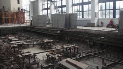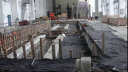 导轨以及钢筋模板安装就位后,于本月24日浇注最后一层混凝土,通过对施工过程的工字钢梁导轨的监测和监控,导轨无偏位,说明最后一层混凝土的浇注是成功的。该层混凝土浇注的成功也意味着我校地震模拟振动台反力基础部分已基本完工,目前已开始拆除模板,准备下一阶段的安装工作。
