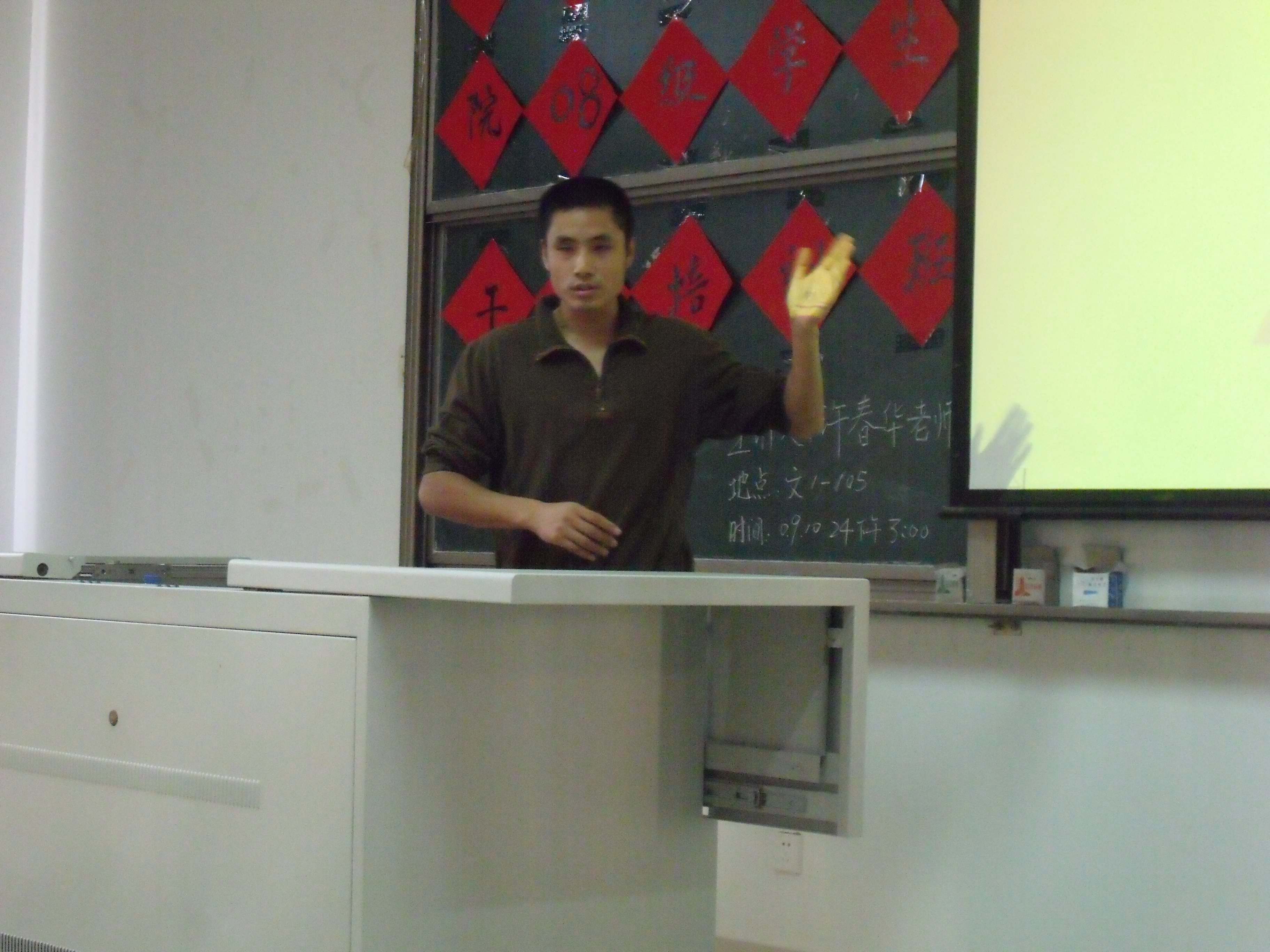 2009年10月24日下午3:00,校团委组织部部长、社联秘书长许春华老师在文1-105给绅士漫画 08级学生会干部、各班班长、团支书进行了第一期干部培训,08级辅导员许长宾、姚学敏也参加了这次培训。