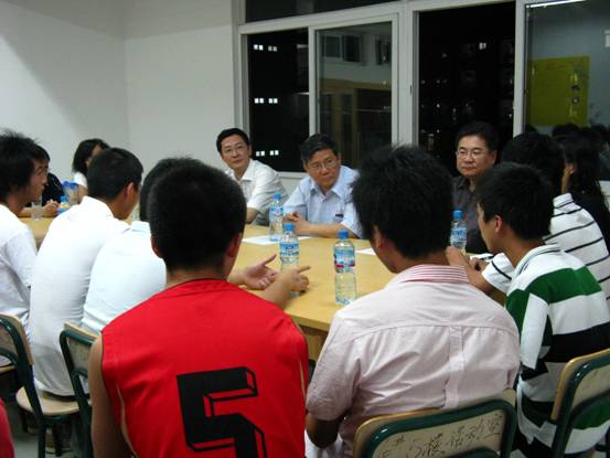 5月12日晚8时许,校党委陈笃彬书记和陈尚义副书记在学生公寓10号楼4层活动室与25名来自去年“5.12”地震重灾区的福大学子亲切交谈。