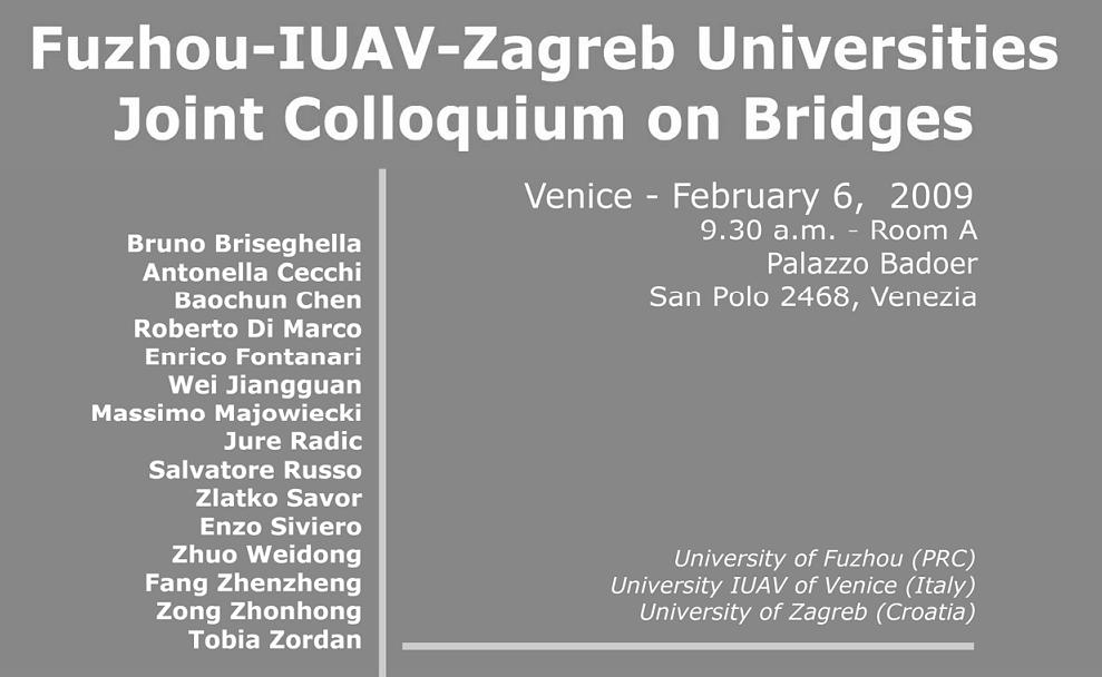 福州(中国)—IUAV(意大利)—萨格勒布(克罗地亚)大学联合桥梁学术研讨会,将于2009年2月6日在意大利威尼斯举行,绅士漫画 房贞政教授、陈宝春教授、卓卫东教授、宗周红教授、韦建刚副研究员等将前往意大利威尼斯参加该研讨会。