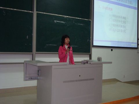 加强大学生的服务意识是党员思想教育的重要内容,是深化大学生志愿者服务体系的必要前提。姚学敏老师以“草莓一代”为例,解释了“服务意识”的具体内容以及重要意义,她重点强调:大学生在参加社会公益服务活动时,要有真心、热心、责任心、决心、恒心;要有接近群众的亲和力,良好的语言表达能力,临场发挥的应变力,驾驭复杂局势的控制力。大学生服务团体在日常的活动中要做到“服务内容具体化,服务主体全员化,服务机制规范化,服务过程爱心化”。大学生个体在参加社会服务活动时要“认清历史责任,增强学习的自觉性;加强党的基本理论和党的基本知识的学习;加强科学文化知识的学习,拓宽知识面,注重综合素质的培养;坚持理论联系实际的方针,注重创新能力的培养”。