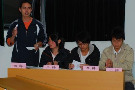 本次辩论赛有幸请到了07级辅导员张晶老师和学院辩论队队员做为评委;参与本次辩论赛的共有12支队伍,分为6组在两个教室进行比赛。辩题分别为“老实人吃亏还是不吃亏”和“人活着为了自己还是别人”。每场比赛都衔接流畅,方向统一,攻守兼备,给观众奉献了一场场精彩的比赛。比赛的最后,评委也对选手在本场比赛的表现进行了点评,针对比赛中存在的不足也提出了中肯的意见。不仅让辩手,也让所有观众受益匪浅.