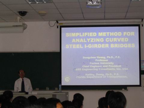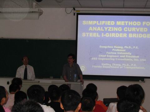 2008年5月26日星期一,绅士漫画 双聘教授、美国ASCE桥梁工程杂志副主编黄东洲博士在公共教学楼西2-306为广大师生做了精彩的学术报告,院长陈宝春、各相关专业部分老师、研究生以及本科生参加了本次讲座。