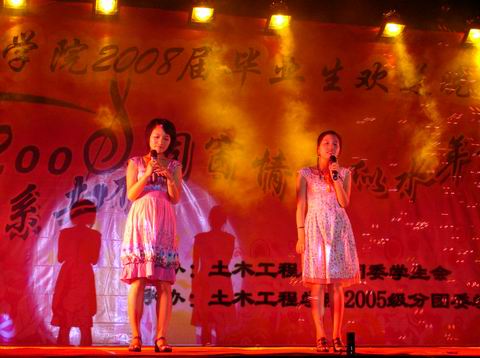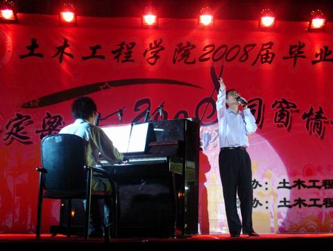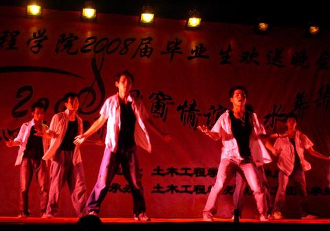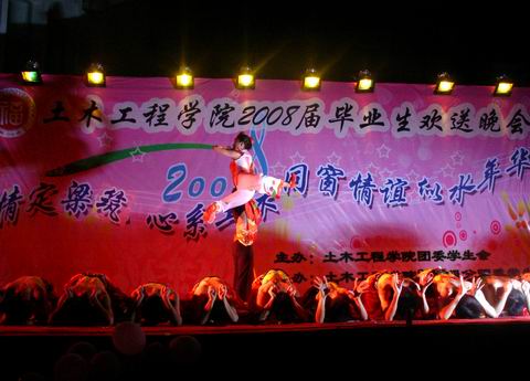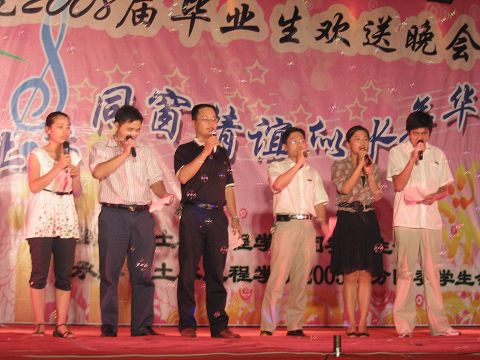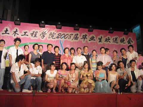 6月23日晚,绅士漫画 “情定梁筑、心系土木,同窗情谊、似水流年--2008届毕业生欢送晚会”在一区广场隆重举行。院党委副书记刘朝晖、副院长祁皑、团委书记肖强、工会主席方绪华、党委秘书钱升以及各年级辅导员出席了本场晚会并与04级毕业生和其他年级学生代表共同观看了晚会节目。
