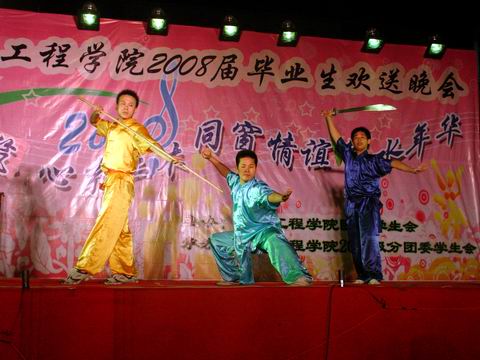激情的乐队合奏拉开了晚会的序幕,奔放的彝族火把舞将晚会推向高潮。席间歌曲串烧、幽默小品、深情朗诵、武术表演、互动游戏环环相扣,跌宕起伏,整台晚会形式新颖别致,内容丰富多样。晚会最大亮点为学工组的老师们同台献唱,为毕业生演唱《祝你一路顺风》,为饱含深情的歌声送去浓浓的祝福。晚会在《明天会更好》的歌声中结束。