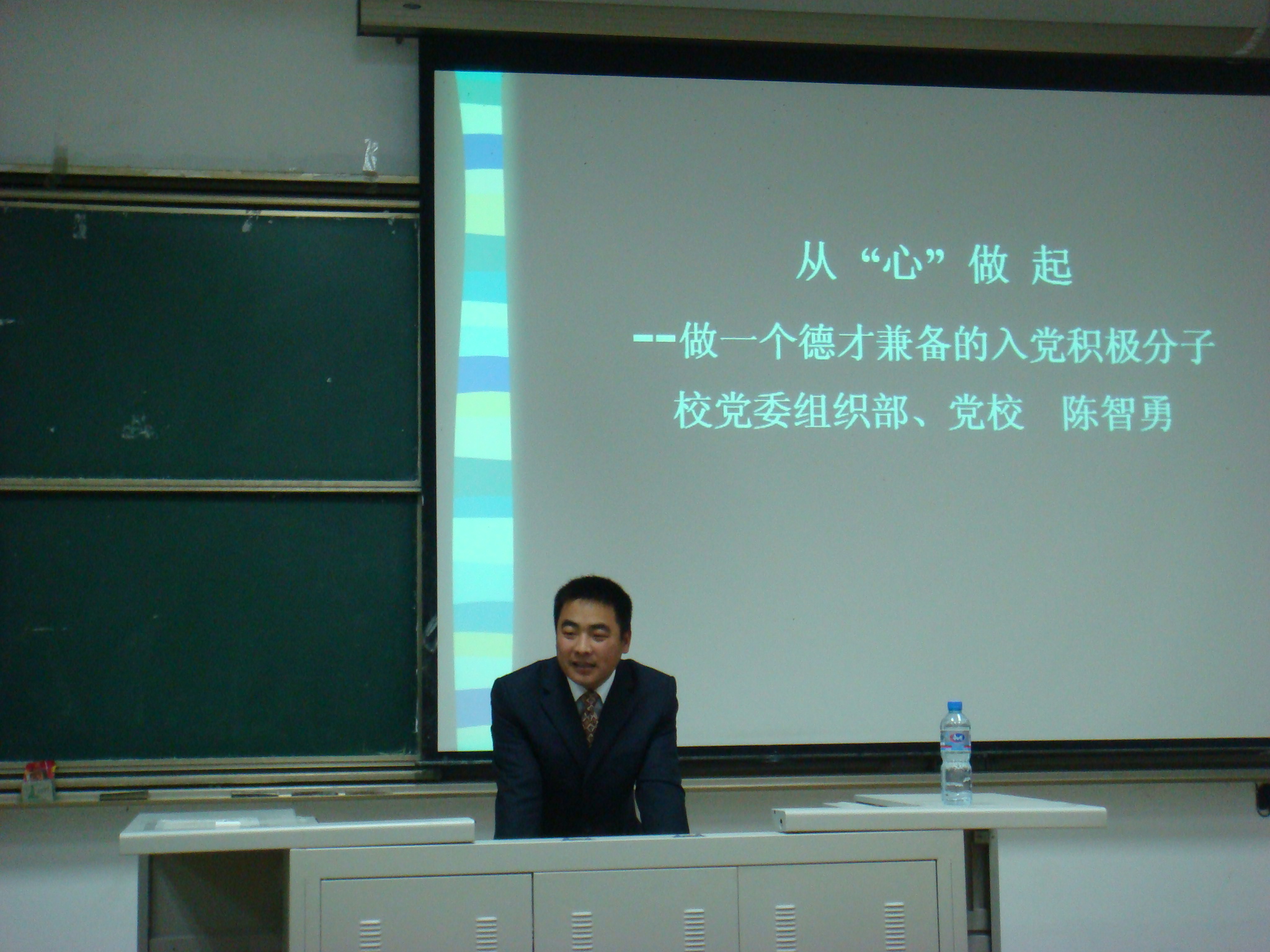 3月6日晚上7点,党委组织部、党校陈智勇老师东2-109为绅士漫画 的190名入党积极分子开展了题为《从“心”做起——做一个德才兼备的入党积极分子》的专题讲座。课堂上陈智勇老师从美国请报局的《十条戒令》谈起,号召同学们做德才兼备的人,并从十个方面分析了我国大学生的现状,并通过图片来阐述道德在人一生中的重大作用。陈智勇老师幽默风趣,深入浅出的讲课让学员们深刻地认识到德与才同时具备的重要性。