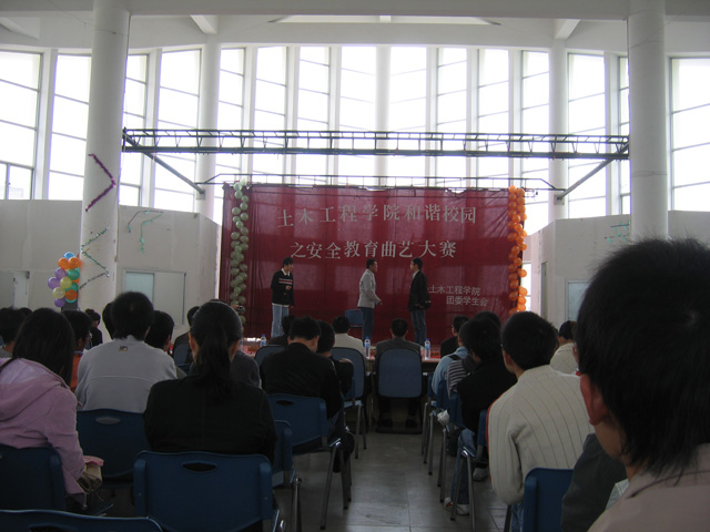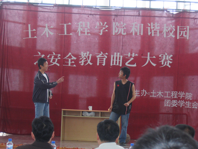 本次大赛以“以人为本,安全第一”为主题,并通过话剧的形式来宣传安全知识,旨在让同学们在娱乐的同时更加体会到安全的重要性,亦展示土木学子的曲艺才华。比赛中,选手们用自己所编所演的话剧从工程安全、食品安全、交通安全及使用违规电器的危害性等角度提醒同学们增强安全意识,并以幽默的手法提醒同学们要提高法律意识、校园防盗防火意识及紧急情况时的自救意识。