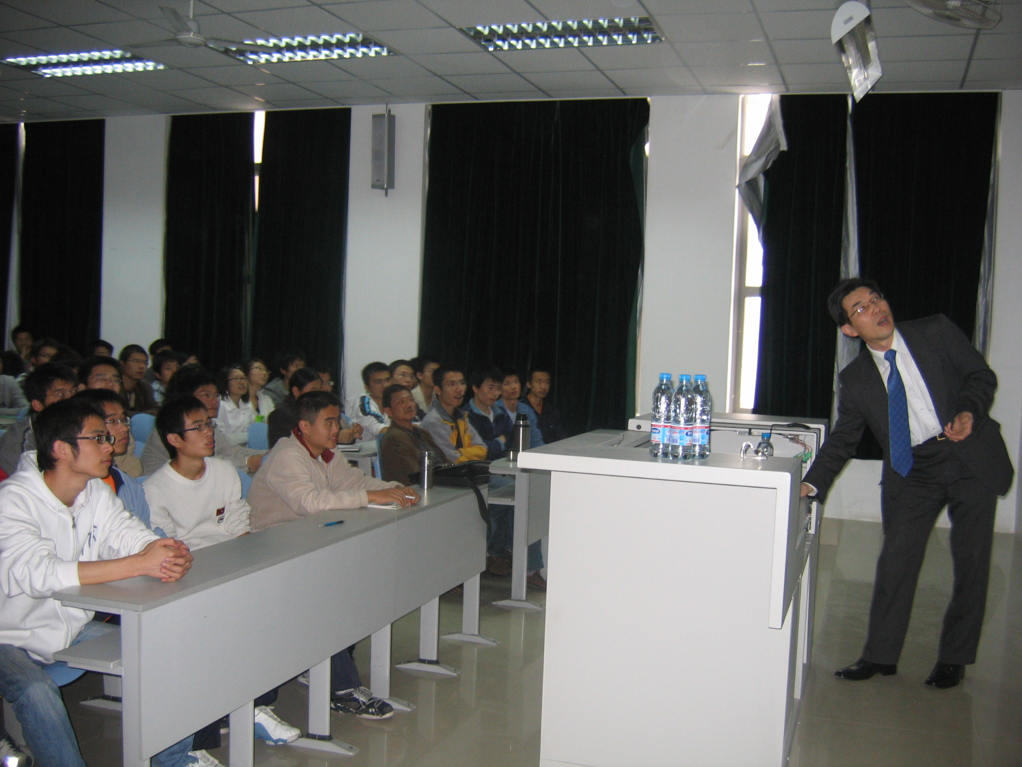 陈工程师根据自身多年的工作经验分别从数学建模在河流工程中的运用、气象灾害预报、城市水质环境开发与控制等方面做了深入浅出的论述。并且陈工程师认真的解答了所有老师和学生针对讲座中的难点、疑点问题。整场讲座在全体师生热烈的掌声中圆满结束。